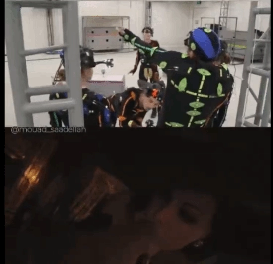 不过由于某些角度方面的问题,动作捕捉演员在拍摄这段极具压迫感的镜头时,得把脸贴近对手演员的隐私部位,这一幕实在让人忍不住发笑。