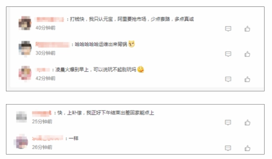 此次卡顿同样在社交平台上引发了网友们的热烈讨论,部分网友坦言希望活动“少些套路,多些真诚”,也有网友开玩笑地调侃让运维人员出来“承担责任”,还有网友直接质疑“要是无法承担就别举办这样的活动”。