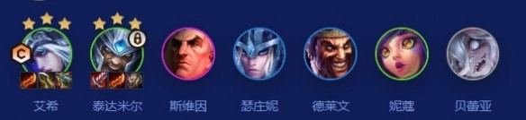 艾希、泰达米尔、斯维因、瑟庄妮、德莱文、妮蔲、贝蕾亚