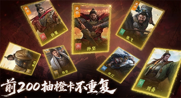 游戏创新推出“前200次抽取橙卡无重复”机制,每一次抽取金卡都能得到全新的猛将。