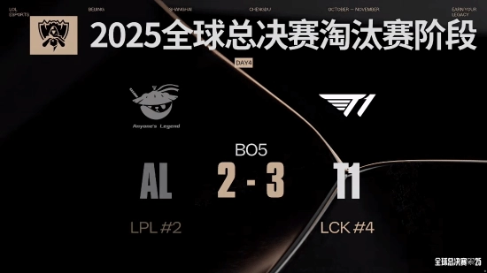 在10月31日晚举行的《英雄联盟》2025全球总决赛上,来自LCK赛区的T1战队以3比2的比分击败了LPL赛区的AL战队。