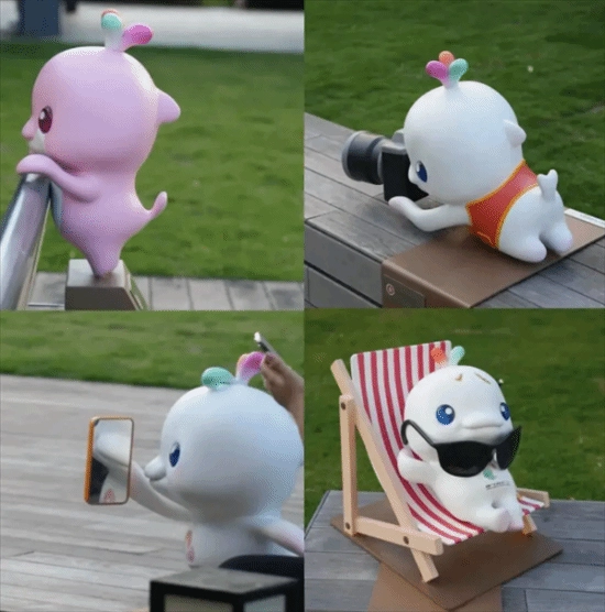 有意思的是,不少网友把海豚吉祥物“认错”成了鸡,还打趣说“正面看着像海豚,背面瞧着更像走地鸡”。