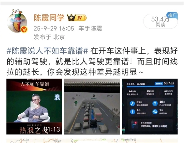 事实上,早在9月底,陈震就提出过“在开车这件事上,表现出色的辅助驾驶,要比人类驾驶更为可靠”的看法,并且他觉得时间跨度越大,这种差距就会越显著。