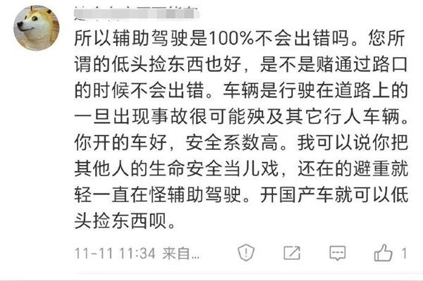 此前,有网友提出疑问:“辅助驾驶真的能做到100%不出错吗?”同时还指出,驾驶员低头捡东西这类行为,本质上是在“赌车辆通过路口时不会发生意外”。
