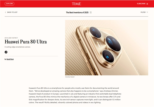 这颗一镜双目长焦镜头此前已收获不少关注,甚至还成功入选《时代周刊》2025年度最佳发明榜单。