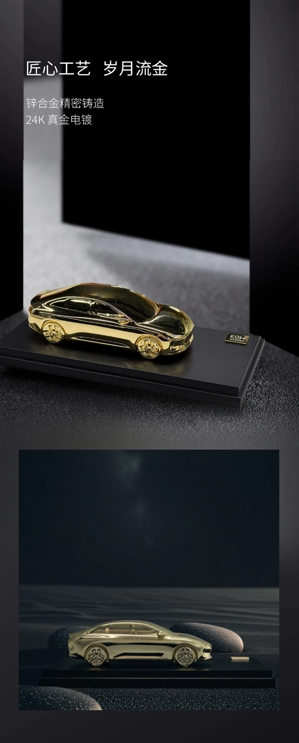 这款车模以1:43的比例精心复刻,借助流线型设计艺术,完美还原了MONA MO3的精致线条。其材质采用锌合金精密铸造,表面还经过24K真金电镀处理。