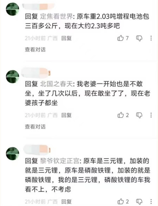 更令人意外的是,他加装的依旧是三元锂电池,之所以选择这种电池,是因为原车配备的就是三元锂电池,他坦言自己对磷酸铁锂电池并不看好。