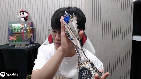 在直播里,Gumayusi 激动地抱起 FMVP 奖杯,表达了自己对这座奖杯设计的喜爱: