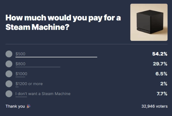 与此同时,媒体也发起了一项针对玩家对主机价格预期的投票,参与人数超过3万。投票结果显示,希望售价为500美元的玩家占比最高,达到54.2%;另有29.7%的玩家希望售价为800美元;而愿意为价格超过1000美元的主机付费的玩家仅占8.2%。