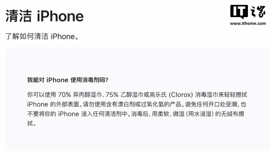 苹果公司始终建议用户,不要用含有强效化学成分的刺激性清洁剂擦拭iPhone,这类化学物质会导致漆面涂层分解。