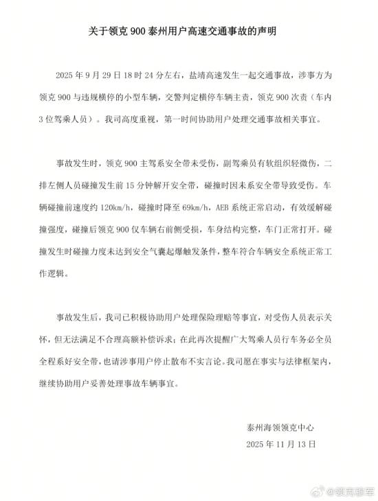 针对此事,泰州海领领克中心发布了声明,其中提到:
